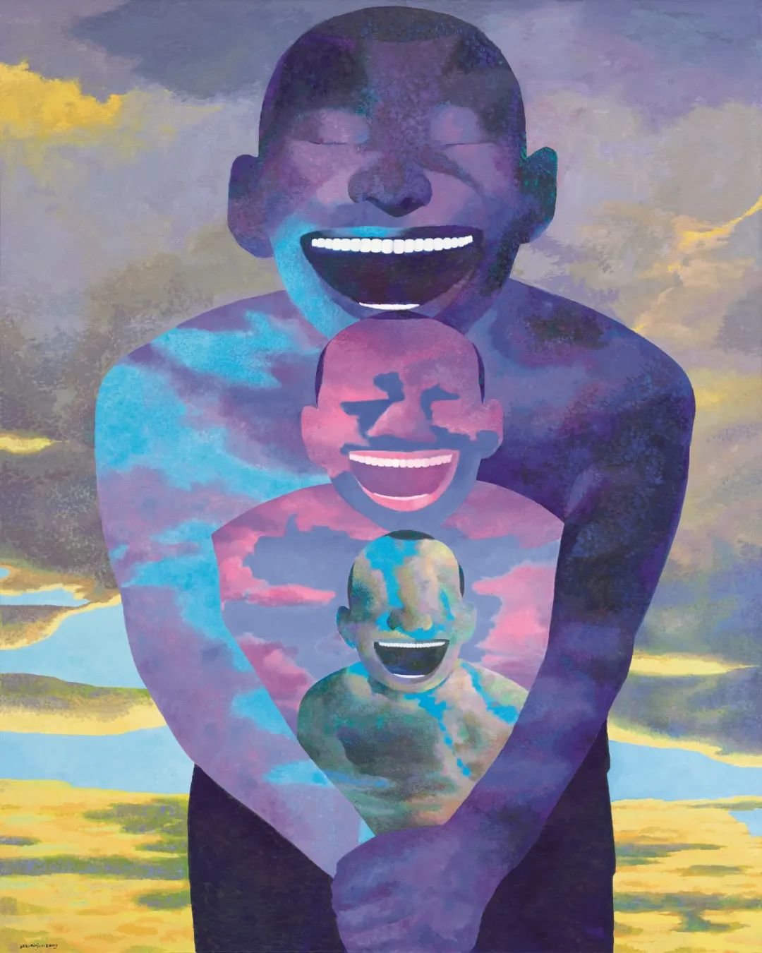 2022 年最后一个,也是 2023 年第一个备受瞩目的展览,当属当代唐人艺术中心和艺术家岳敏君继香港空间“拈花一笑”之后再次合作的个人展览“幸福”。作为中国当代艺术的核心人物之一,岳敏君和他的艺术始终呈现出的是一种“自为存在”的特立独行。这位 1962年出生于黑龙江的艺术家,在过去的 30 多年里,作为玩世现实主义的代表艺术家,一直身处中国当代艺术不同阶段的风口浪尖之上。他的天价画作,他作品中标志性的“笑脸”,一个闭着眼睛放肆大笑的粉红色人物,以各种造型出现在你所能知道的各种标志性场所。