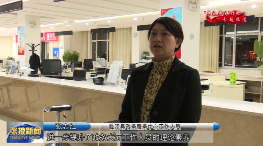 临泽县政务服务中心工作人员 张志红:“进一步提升政务大厅工作人员的理论素养、业务素质,提升群众在政务大厅办事的快捷性、高效性以及方便性。”