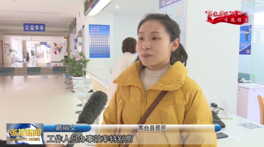 高台县居民 葛丽文:“工作人员办事效率特别高,服务热情周到,让我们一次性把事情办完,不用来回跑,真是太方便了。”