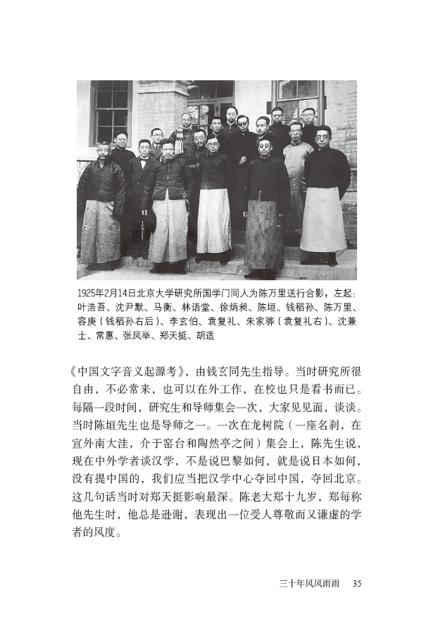 毅老(郑先生字毅生)和我连屋而居,共案而食,日得数见。当时住局诸君以毅老年龄最长,因共推为祭酒。毅老体质甚健,晬面盎背;对人态度寓和蔼于严正之中,言笑不苟;谈起学问来,虚怀若谷。