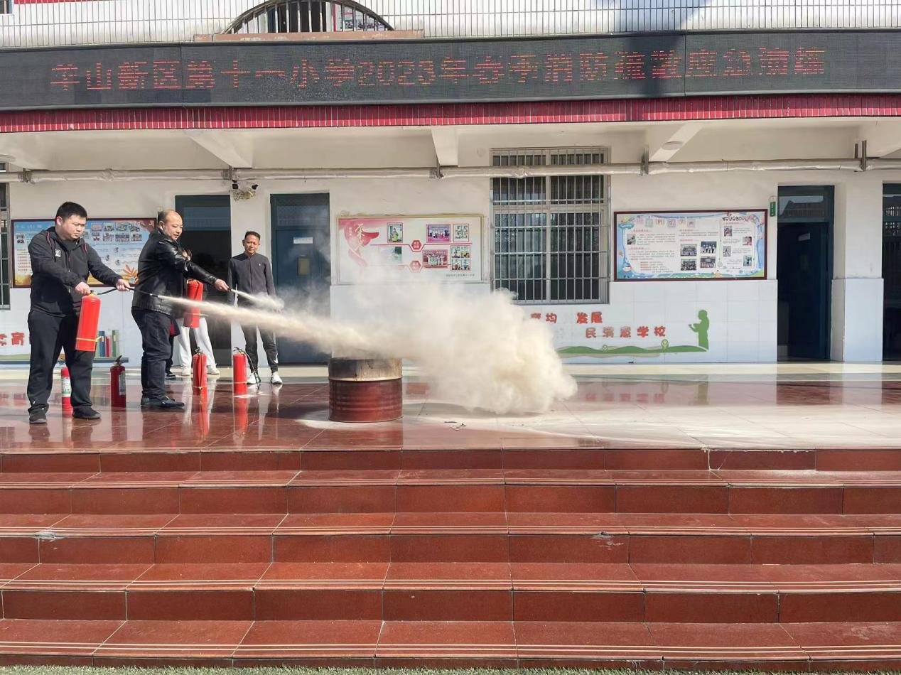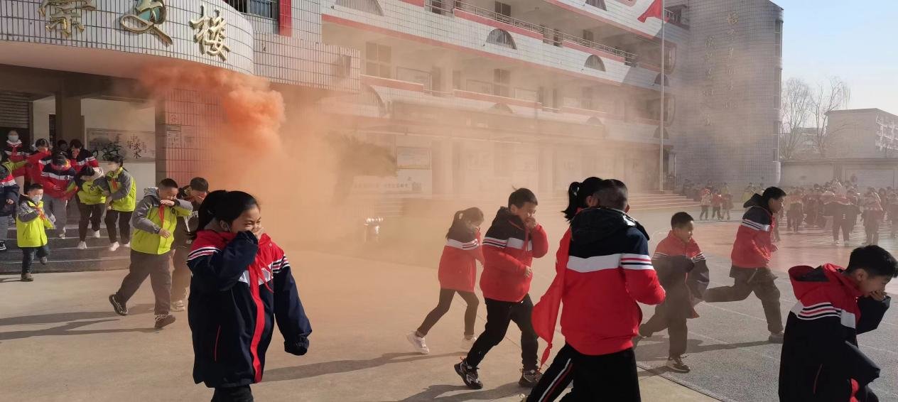 伴随着紧急警报声响起,各班教师迅速按消防安全演练预案的疏散路线,带领学生和幼儿用衣袖或手捂住口鼻,弯腰,冷静、小步快走,迅速有序,全体师生用时1分53秒撤离到安全位置。王宏涛老师向同学们详细讲解了灭火器的使用方法,并邀请老师和学生一起操作灭火器。副校长张新乐对本次疏散演练做出点评和小结,并就如何应对突出事件进行了专题报告。羊山办事处和社区工作人员也全程参与指导了此次演练活动。