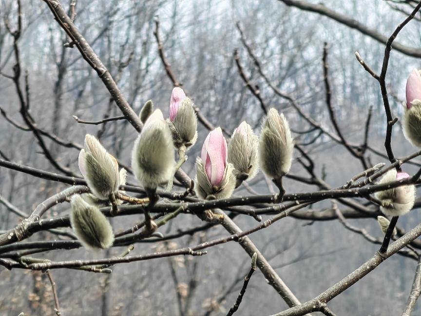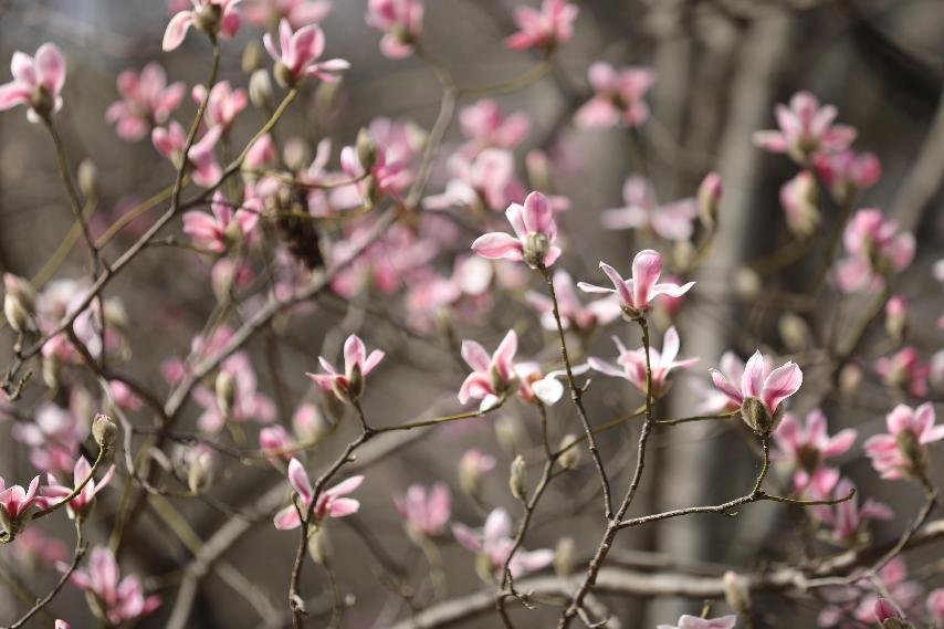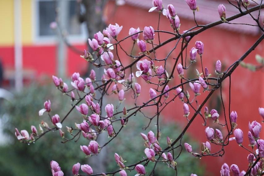 又是辛夷花开季,鲁山县团城乡十万株辛夷花相继绽放,一朵朵、一串串,有红的、紫的、白的,分外妖娆。