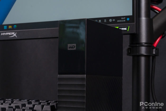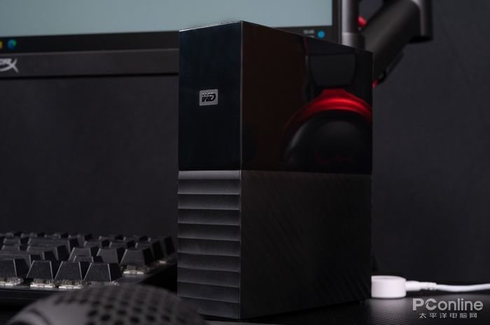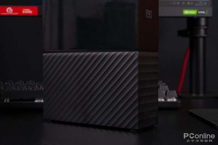 视角转到WD My Book™台式硬盘,妥妥的颜值担当,其延续了自家My Passport系列移动硬盘的经典设计风格,整体外观十分硬朗大气,里外都是满满的科技感。