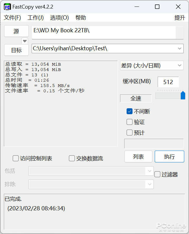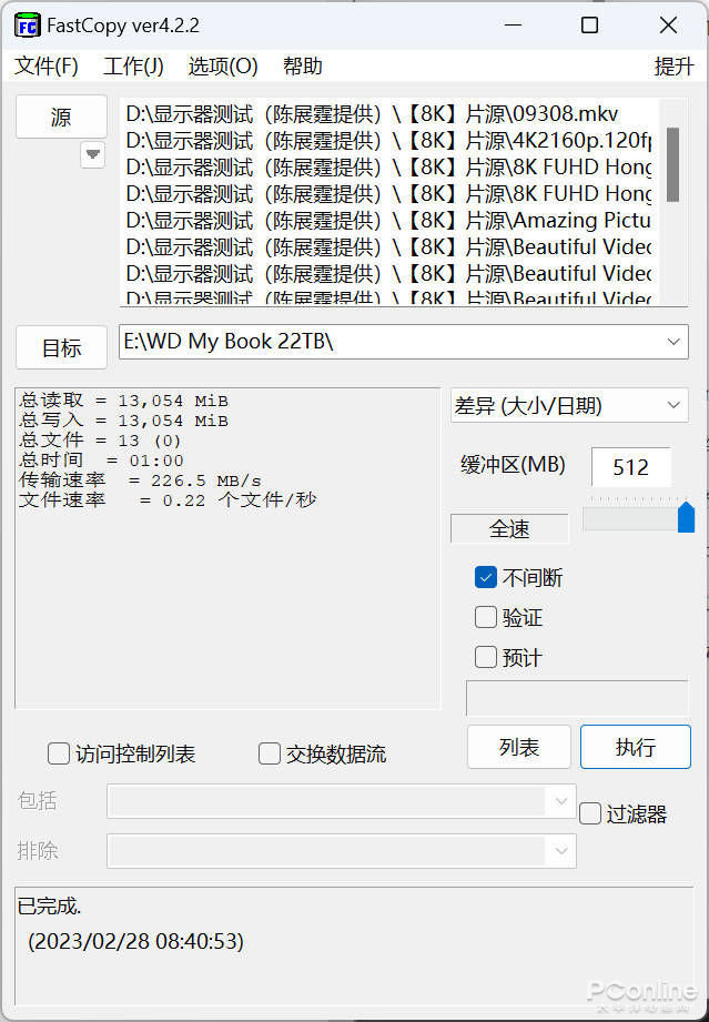 在FastCopy内,文件写入阶段,该数据包只用了1分钟就完成了操作,平均速率达到226.5MB/s,这个速度已经相当不错了。