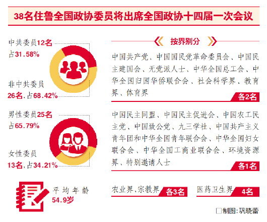 本报北京3月2日电 全国政协十四届一次会议即将于3月4日在北京开幕。出席此次会议的住鲁全国政协委员一共有38名。
