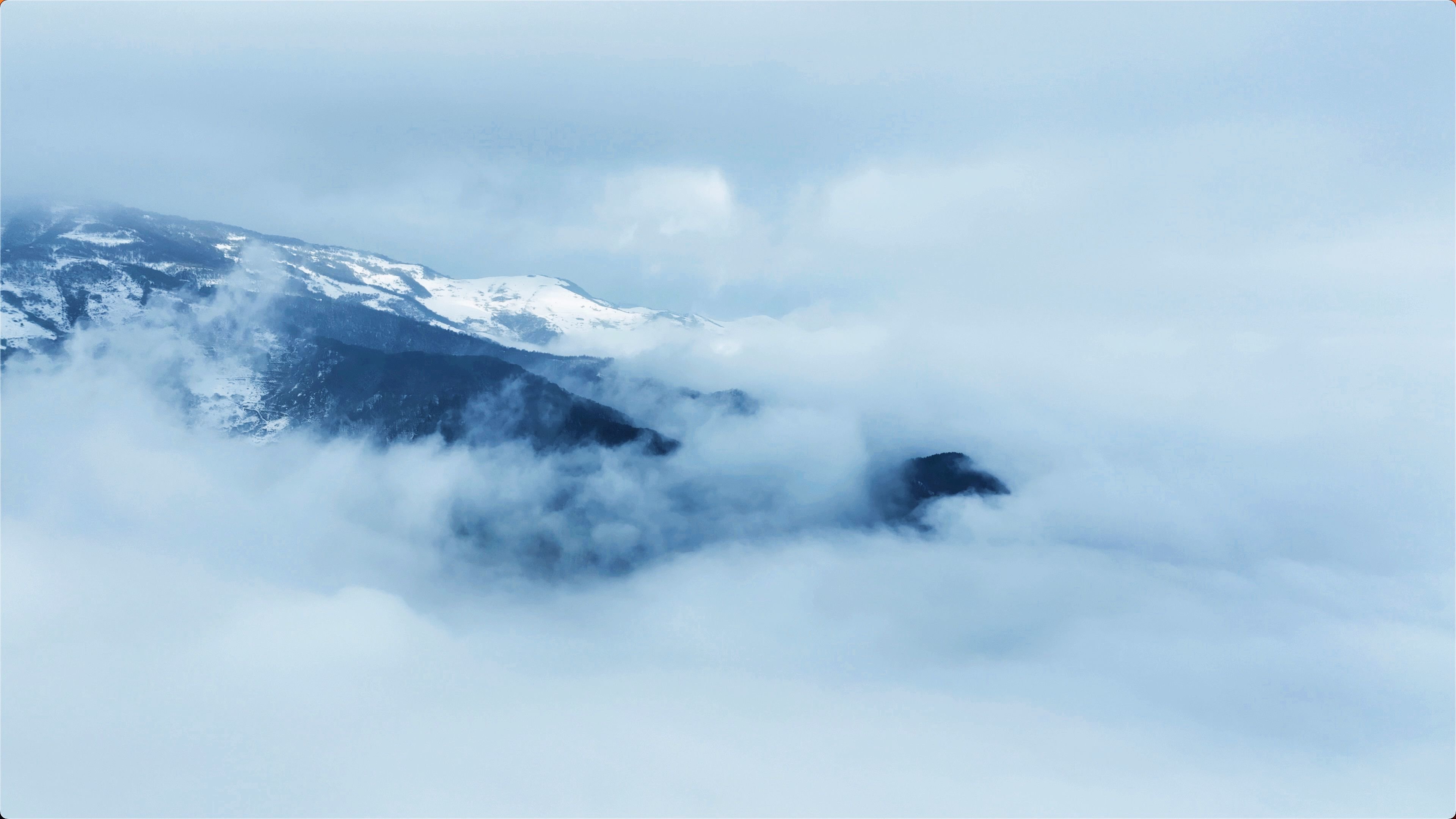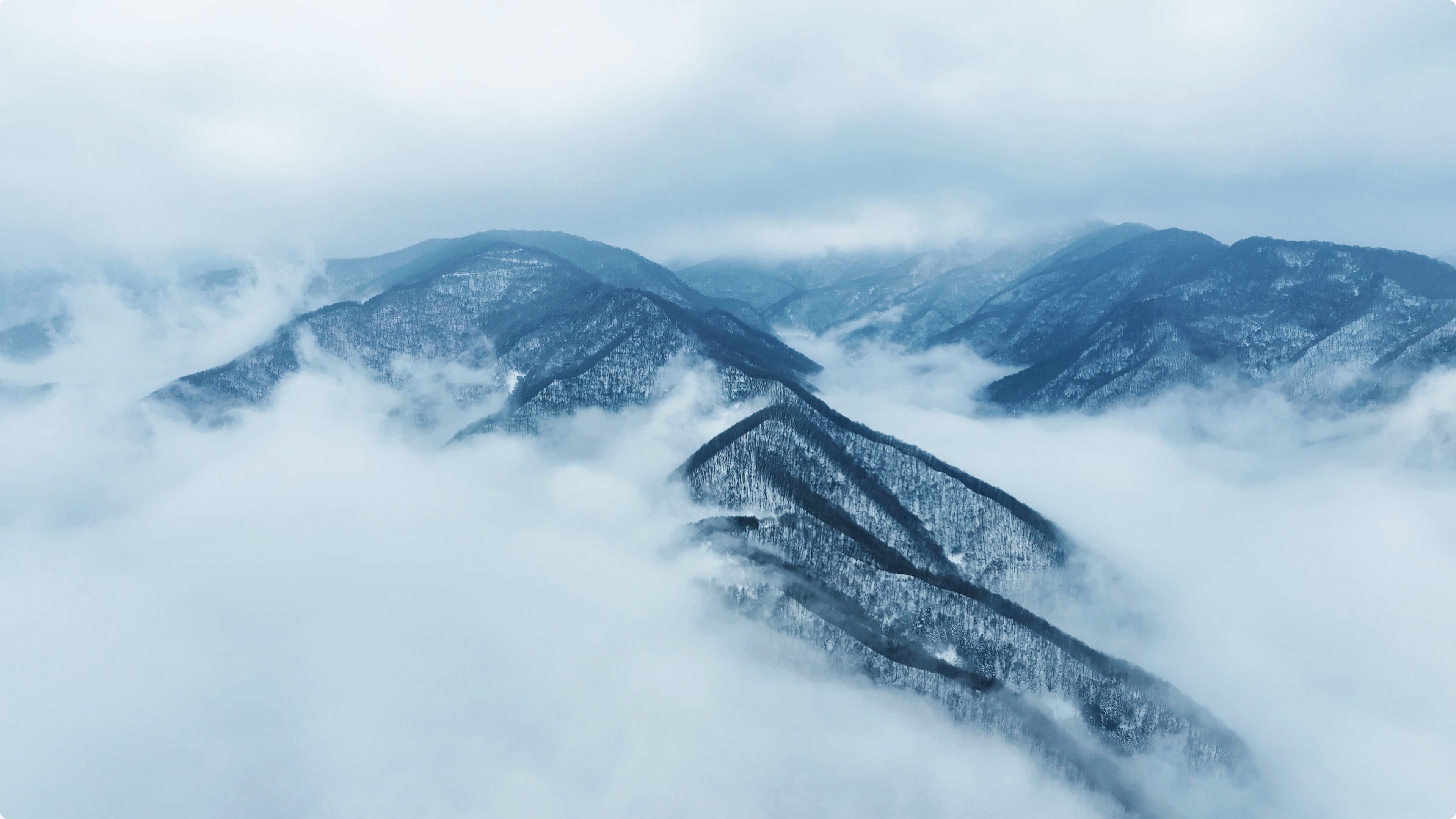 巍峨的茫茫关山至今还保留着最后一点春雪的尾巴,放眼望去,雪景与云海交相辉映,气势磅礴的山峰、挺拔多姿的奇松、晶莹剔透的雾凇,在云海的衬托下,宛若一幅美丽的流动山水画;空中俯瞰,白云如潮水般翻涌在山峦之间,蔚为壮观,如同进入人间仙境!