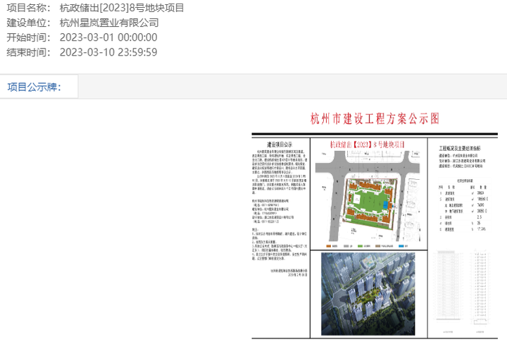 乐居买房讯 近日,杭州市自然资源和规划网发布了杭政储出[2023]8号地块的规划公示,公示日期截止2023年3月10日。