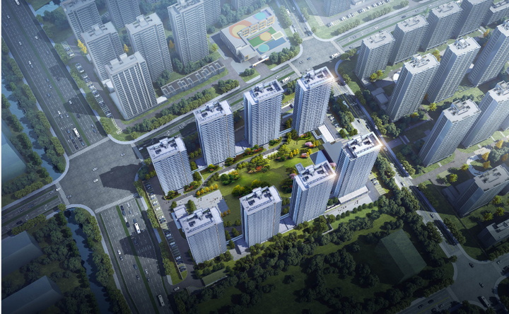 景观上,小区人行主入口处规划了景观水系,中央规划一处3480㎡的集中绿地,8号楼前侧规划一处745㎡的体育健身场地。
