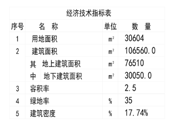 该项目总用地面积为30604㎡(约46亩),总建筑面积为106560㎡,地上建筑面积为76510㎡,地下建筑面积为30050㎡,建筑密度17.74%,容积率2.5,绿地率35%。