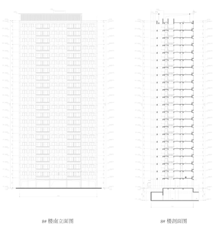 住宅上,小区内部采用围合式布局,规划8幢住宅,含1幢22F、1幢24F、1幢25F和5幢26F,住宅层高在3米。3、6、7、8号楼底部架空,2、4、5号楼为局部架空,架空层高4米。