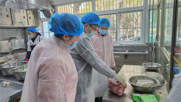 通过检测小组的现场查看后,对海棠园食品处理工作人员的操作符合性、规范性十分认可,并对幼儿园食堂安全工作的精细化管理给予了高度肯定。