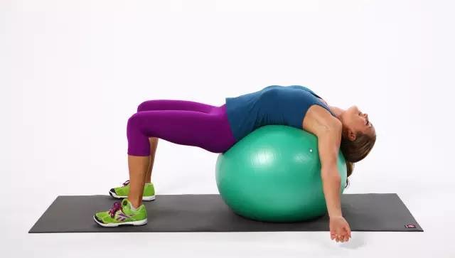 操作的方法很简单,将你的头和上背部倚靠在抗力球上,将你的手垂直于躯干向外伸展,将你的臀部向地板的方向下沉,维持这个姿势,时间长10个呼吸。