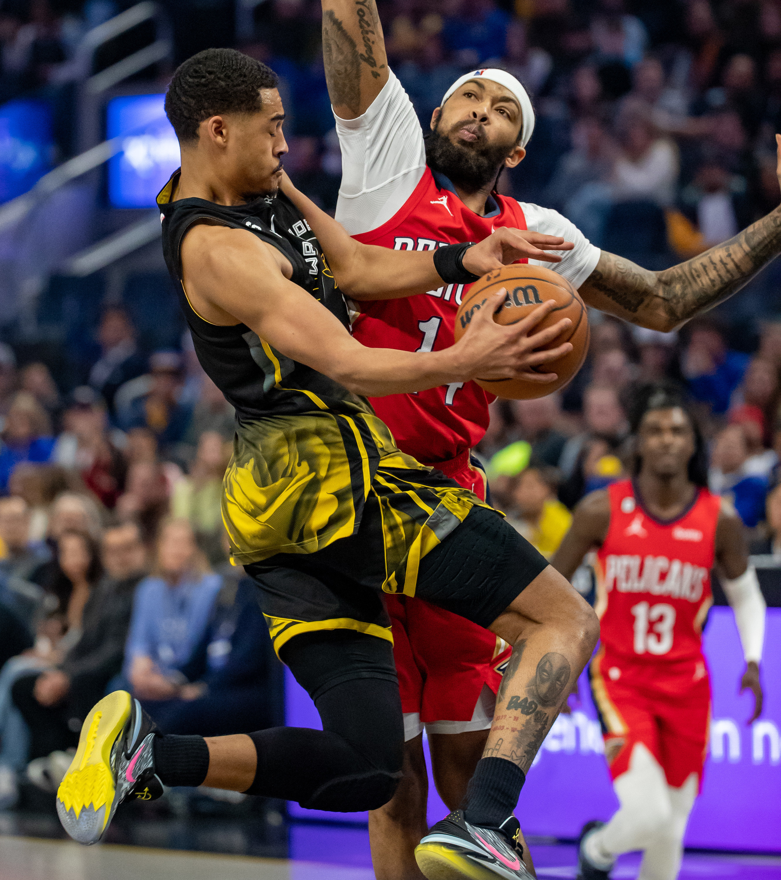 3月3日,勇士队球员普尔(左)在比赛中。新华社发(董旭东摄)