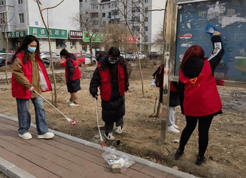 3月2日,吉林大学外国语学院团委与长春市朝阳区孟家社区联合开展了“‘锋’华正茂恰少年”学雷锋志愿服务主题活动,30余名学生志愿者分成4组,分别进行了清理非法粘贴广告、打扫丢弃废物、清除卫生死角和更换宣传板报的志愿服务工作。“活动结束后自己的手黑了、衣服脏了,但在大家的努力下,宣传栏焕然一新,街道变得特别干净,成就感满满。”参加了活动的2022级本科生谭青山表示,走出校园参加志愿服务活动,让自己更切实体会到了雷锋精神的内涵。
