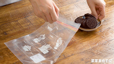 奥饼干碎放入密封袋敲碎