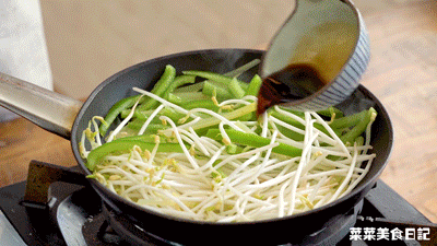 至变软,再加入青椒丝、芽菜丝翻炒均匀