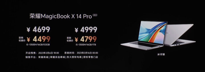 荣耀MagicBook X 14 Pro整机轻至1.34kg,薄15.9mm,全系采用一体化金属转轴设计。此外,荣耀MagicBook X Pro系列全系支持MagicOS,智慧体验全新跃级。售价方面,荣耀MagicBook X 14 Pro首销优惠价4499元起,荣耀MagicBook X 16 Pro首销优惠价4299元起,将于3月16日正式开售。