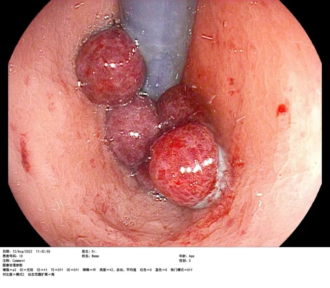 在今年行内镜下内痔套扎的71例病人中,通过结肠镜检查发现恶性肿瘤1人、神经内分泌肿瘤1人、结直肠腺瘤息肉49人。息肉发生癌变的过程,一般需要5-15年的时间,通常认为是10年,绝大部分结肠癌是由腺瘤性息肉发展而来。