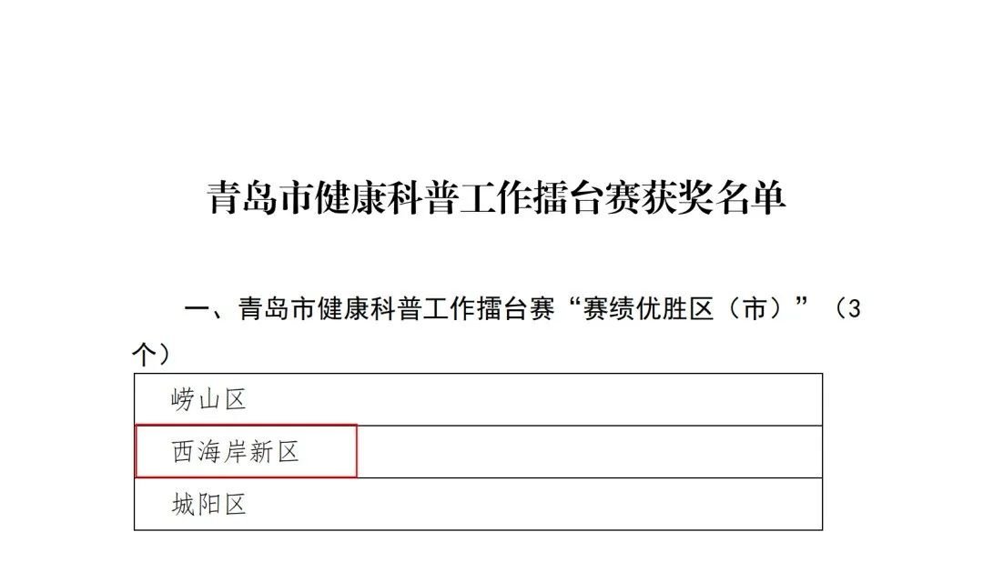 为激励全市卫生健康工作机构和人员在健康教育工作中发挥骨干作用, 充分利用“健康青岛科普资源库”线上健康知识传 播平台, 向市民提供更多高质量的健康科普知识,2022 年,市委宣传部、市委网信办、市卫生健康委、市科技局、市科协联合组织开展了青岛市健康科普工作擂台赛。青岛西海岸新区中心医院积极响应并高度重视,共提报53位科普专家、107条科普视频参赛,为西海岸新区获得“赛绩优胜区(市)”增加了内涵和力量。四位“健康青岛科普使者”将枯燥的健康知识制作成生动的百姓能看懂的科普视频,让市民掌握更多的健康知识!