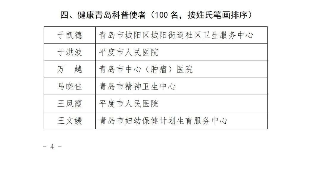 青岛西海岸新区中心医院四位科普专家被评为“健康青岛科普使者”。是医院重视科普宣传的体现,“知微见著,睹始知终”让更多的人看到了白衣天使呵护健康、爱岗敬业的奉献精神。