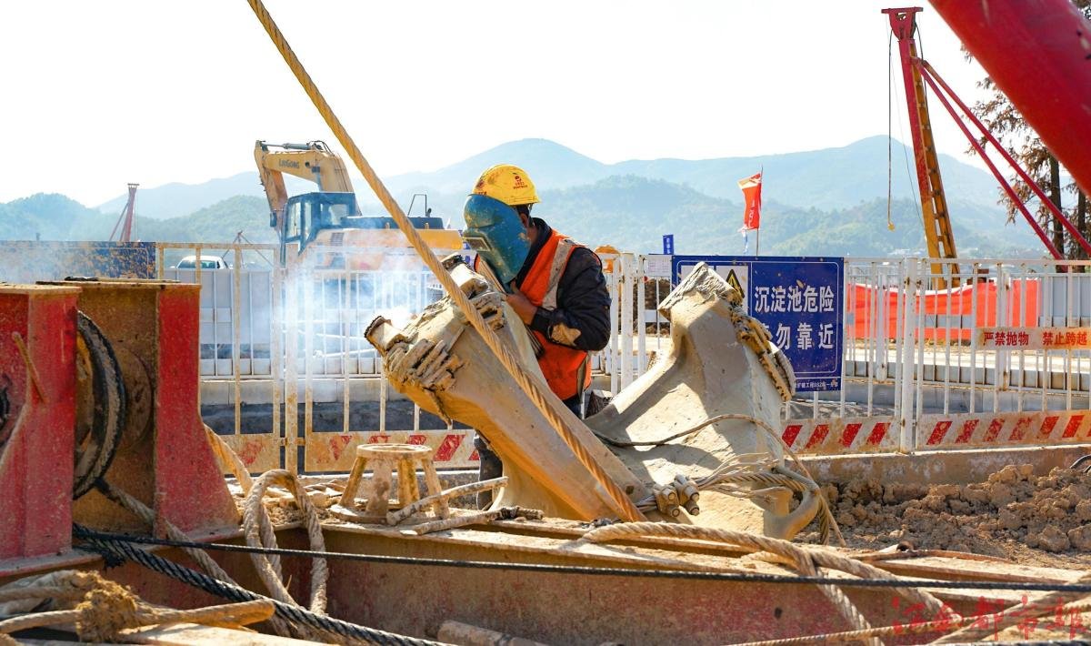 热火朝天的施工场景令人振奋,装载机载满材料往来穿梭荡起滚滚烟尘,建设者们发扬拼搏精神,全力奋战施工一线,紧锣密鼓地开展桩基施工各项工作,从钻孔、成孔、清孔、下放钢筋笼到浇筑,现场技术员全程监控,确保各项工序合理衔接,作业人员紧抓工期严把安全质量关,精细化落实施工节点。