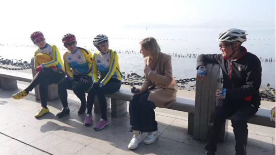 一支骑行队,队员年龄大多六七十岁,引起了外国观察员安泽的注意。