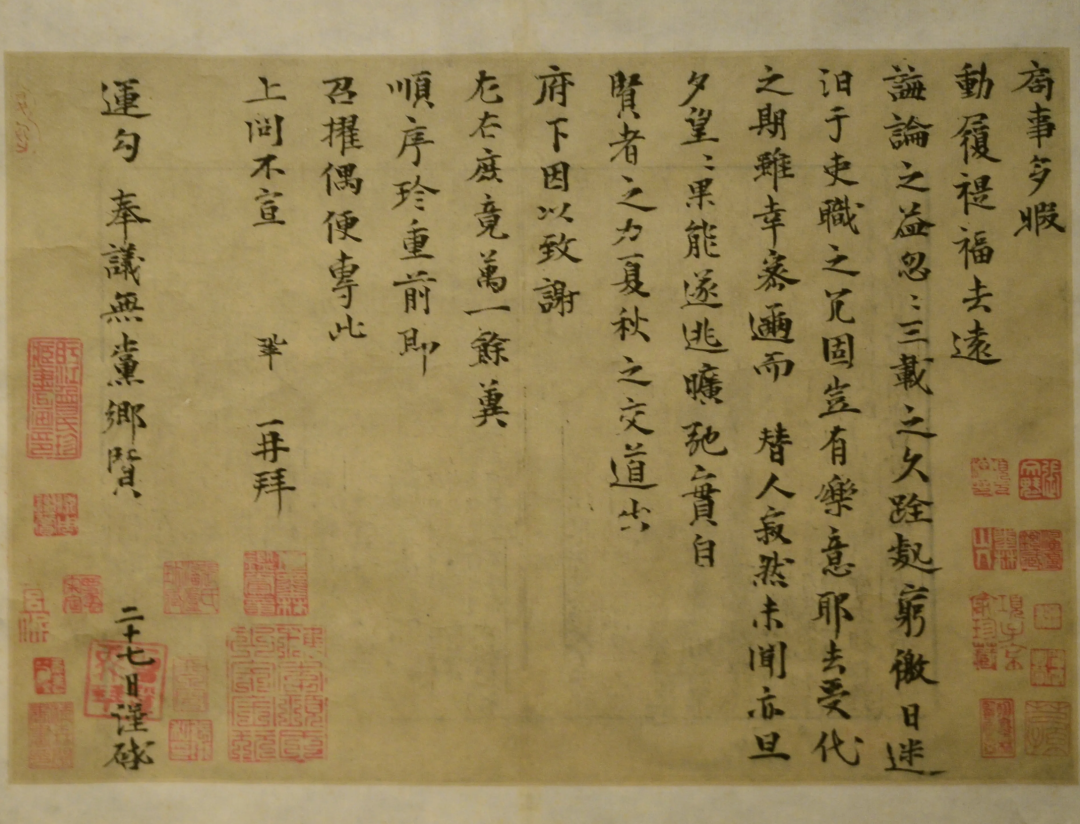 某顿首:辱书,具感恩意之厚。先人铭固尝用子固文,但事有缺略,向时忘与议定。又有一事,须至别作,然不可以书传。某与子固,亦可以忘形迹矣,而正之云然,则某不敢易矣。虽然,告正之作一碣,立于墓门,使先人之名德不泯,幸矣……铭事子固不以此罪我两人者,以事有当然者。且吾两人与子固,岂当相求于形迹间耶?然能不失形迹,亦大善,唯碣宜速见示也。某忧痛愁苦,千状万端,书所不能具,以此思足下,欲飞去。可以言吾心所欲言者,唯正之、子固耳。思企,思企,千万自爱!