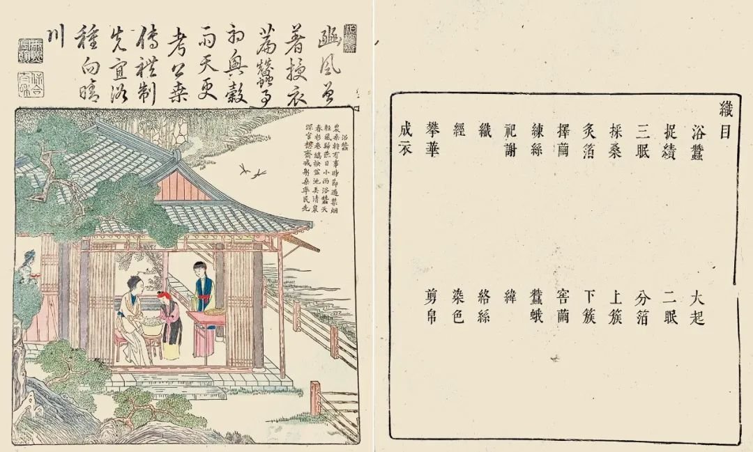 除了以上诸位男性高级文官对南巡受赐《御制耕织图》等撰文外,还有康雍时期著名的八旗才媛高景芳所作的闺阁诗《恭阅上赐〈耕织图〉敬赋十首》。康熙四十四年(1705),康熙帝第五次南巡,三月,至松江府,其间多召见江南官员、士子及其家属,而其中八旗才媛高景芳,因其出身名门,且身份高贵,故先后多次受到皇室的赏赐和召见,“两次朝见三宫,再承恩赐,前后稠叠”。高景芳写了多首康熙帝南巡时,她与皇帝、皇后、公主见面,及颁赐之物的诗篇。《恭阅上赐〈耕织图〉敬赋十首》句句回应康熙帝的御制诗文与《御制耕织图》的画面,其中两篇写道: