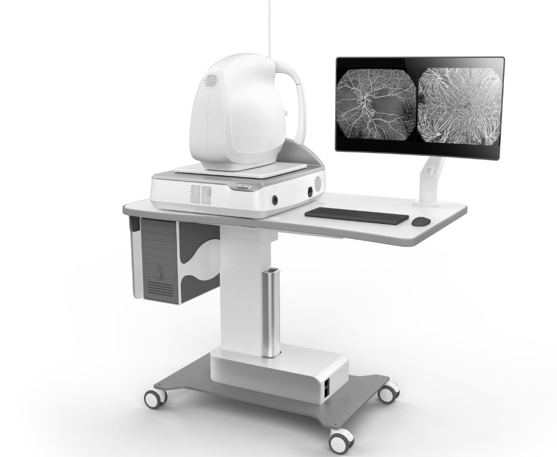 OCTA(眼底相干光层析血管成像术)是一种非侵入性的新型眼底影像检查技术,在显示眼底视网膜组织横断面结构的基础伤进行无创的血管成像。设备拥有40万次/秒的高速扫描,0.6秒即可完成黄斑区域的扫描,极短的检查时间,减轻了患者检查配合难度,改善了就诊体验。