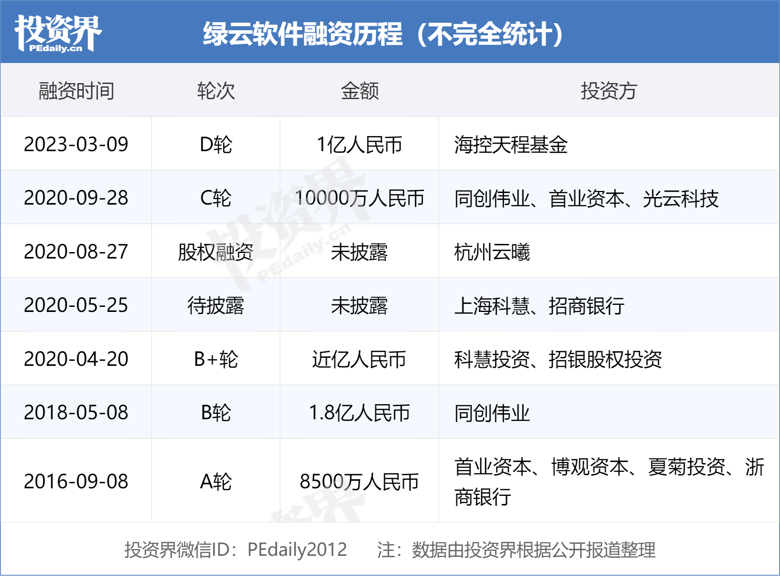 投资界3月9日消息,杭州绿云软件股份有限公司(以下简称“绿云”)宣布完成D轮融资,金额为一亿元人民币。本轮投资方为海控天程基金,该基金由同程旅行(0780.HK)、海控集团及青岛市、区两级引导基金共同发起设立。绿云董事长兼CEO杨铭魁表示:D轮融资将用于行业数字化方案的研发和打造,夯实绿云大住宿业数字生态服务商的能力和定位。公司将继续“四轮驱动”的战略,联合行业上下游,持续助力大住宿业行业数字化转型升级。