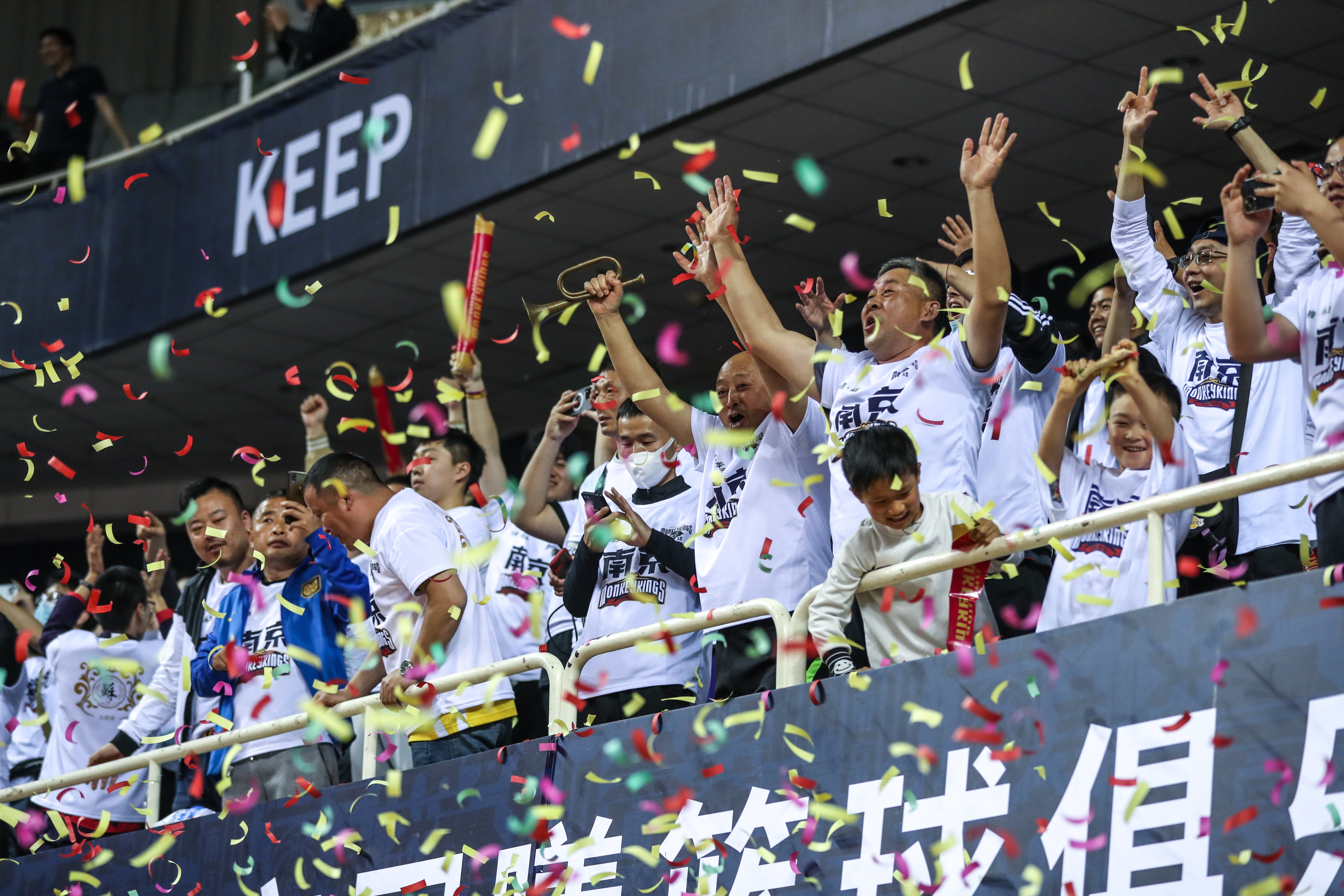 3月9日,南京同曦宙光队球迷在比赛后庆祝。新华社记者 杨磊 摄