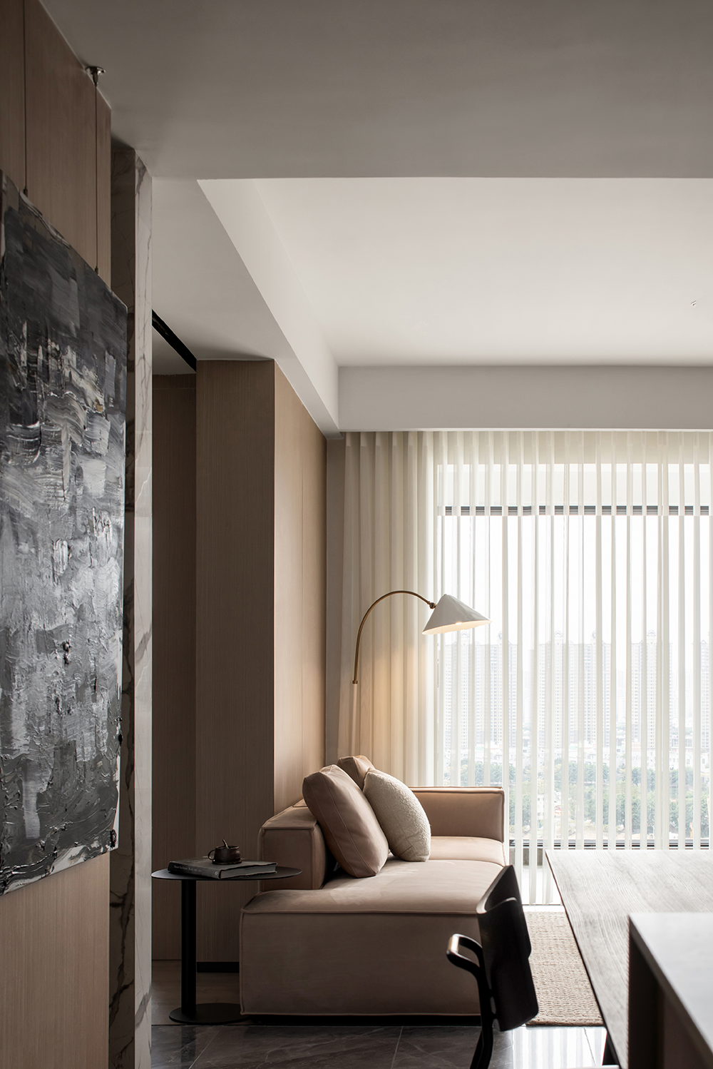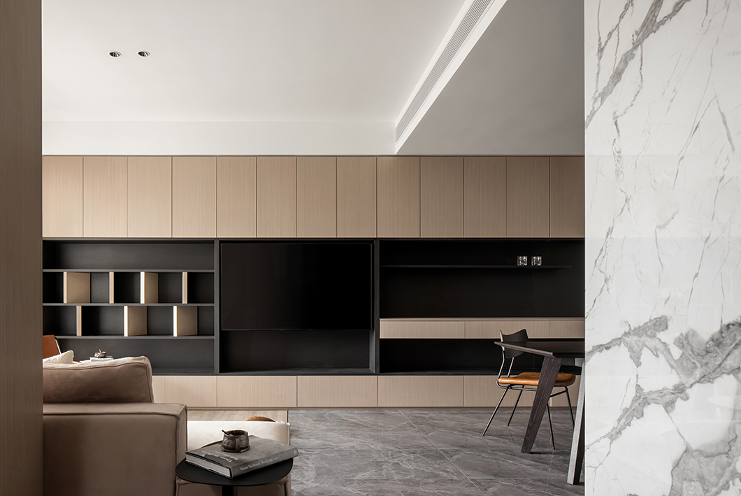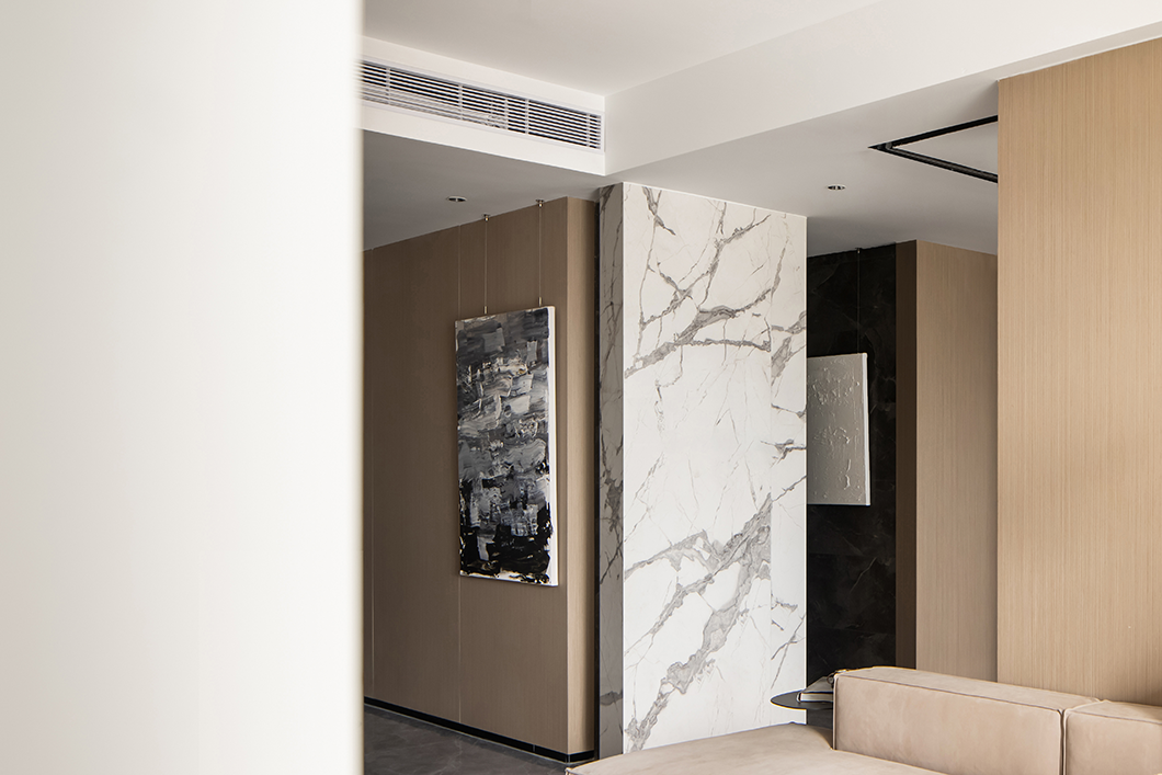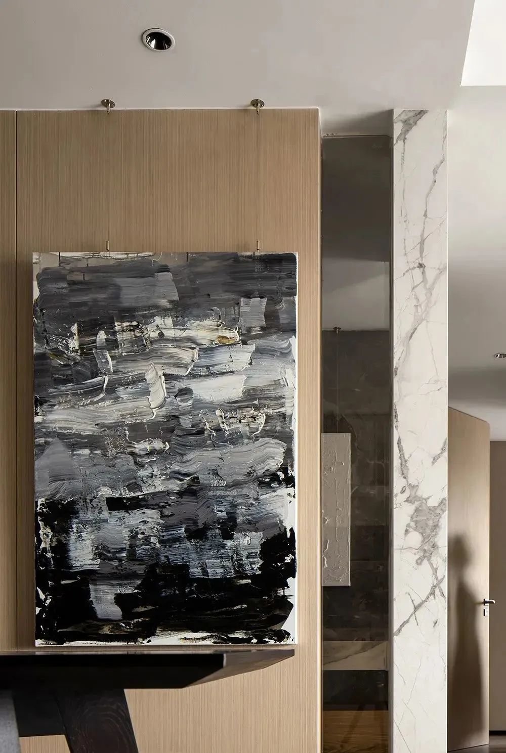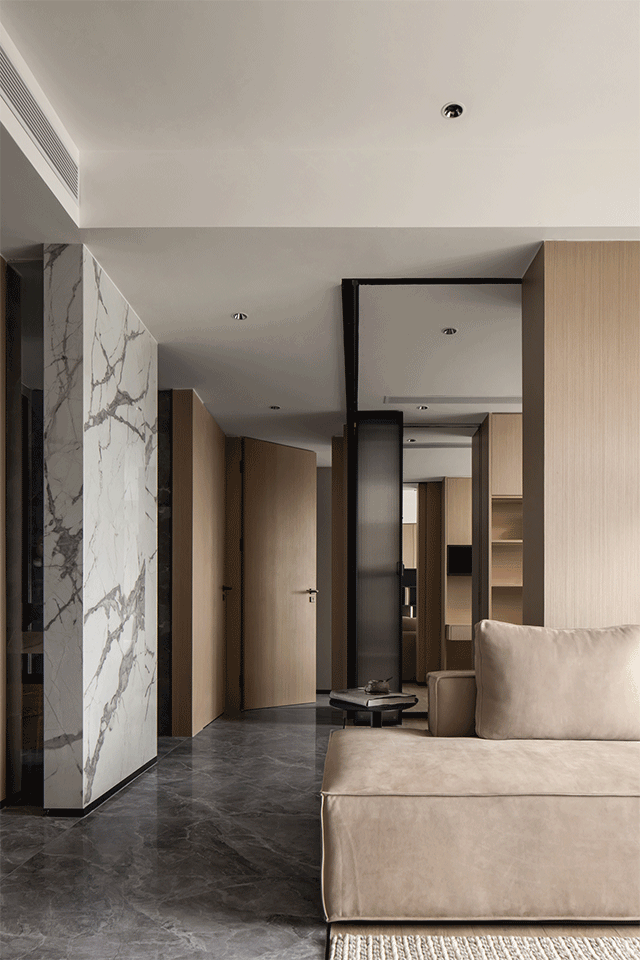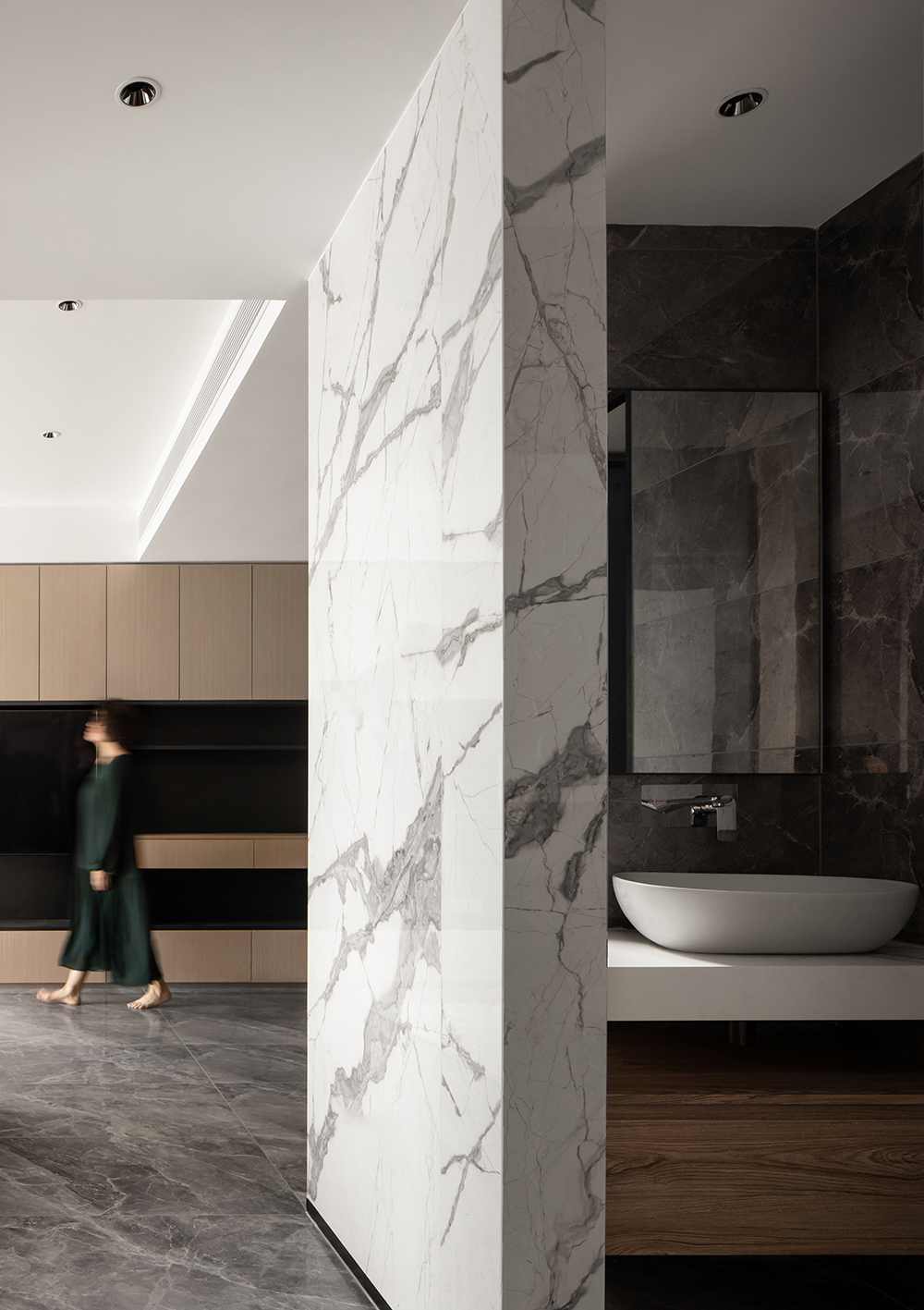 ▲宁静又高贵的大理石与温馨又自然的木饰面相撞,呈现出一种低调的高级感。