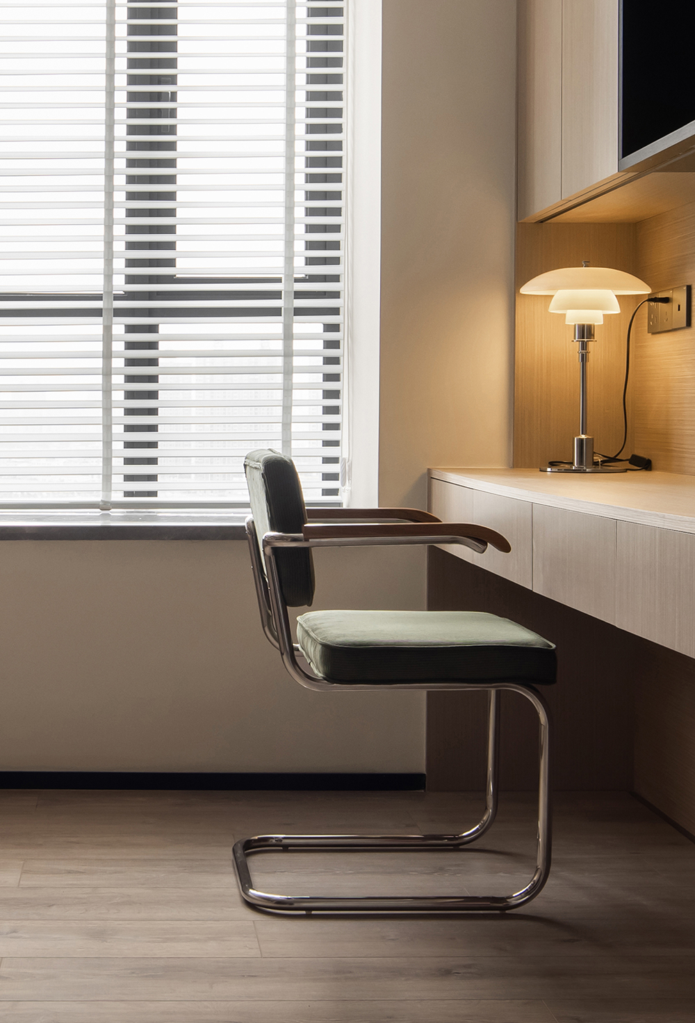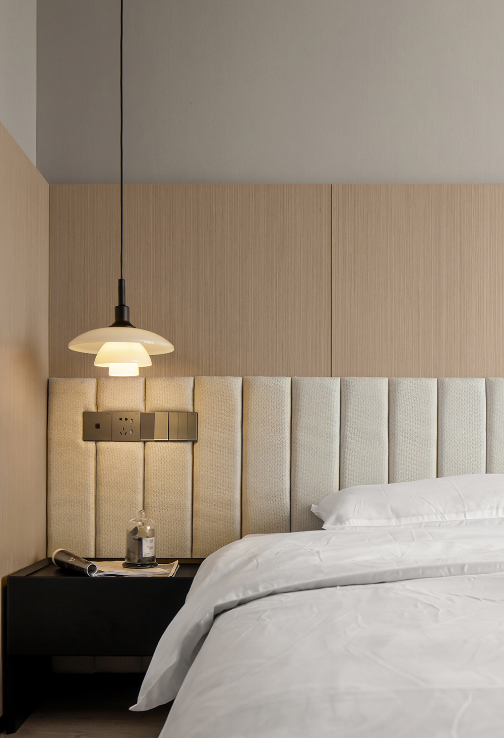 ▲浅色的木饰面搭配奶油色的软包,彼此衬托,更能凸显彼此的质感。