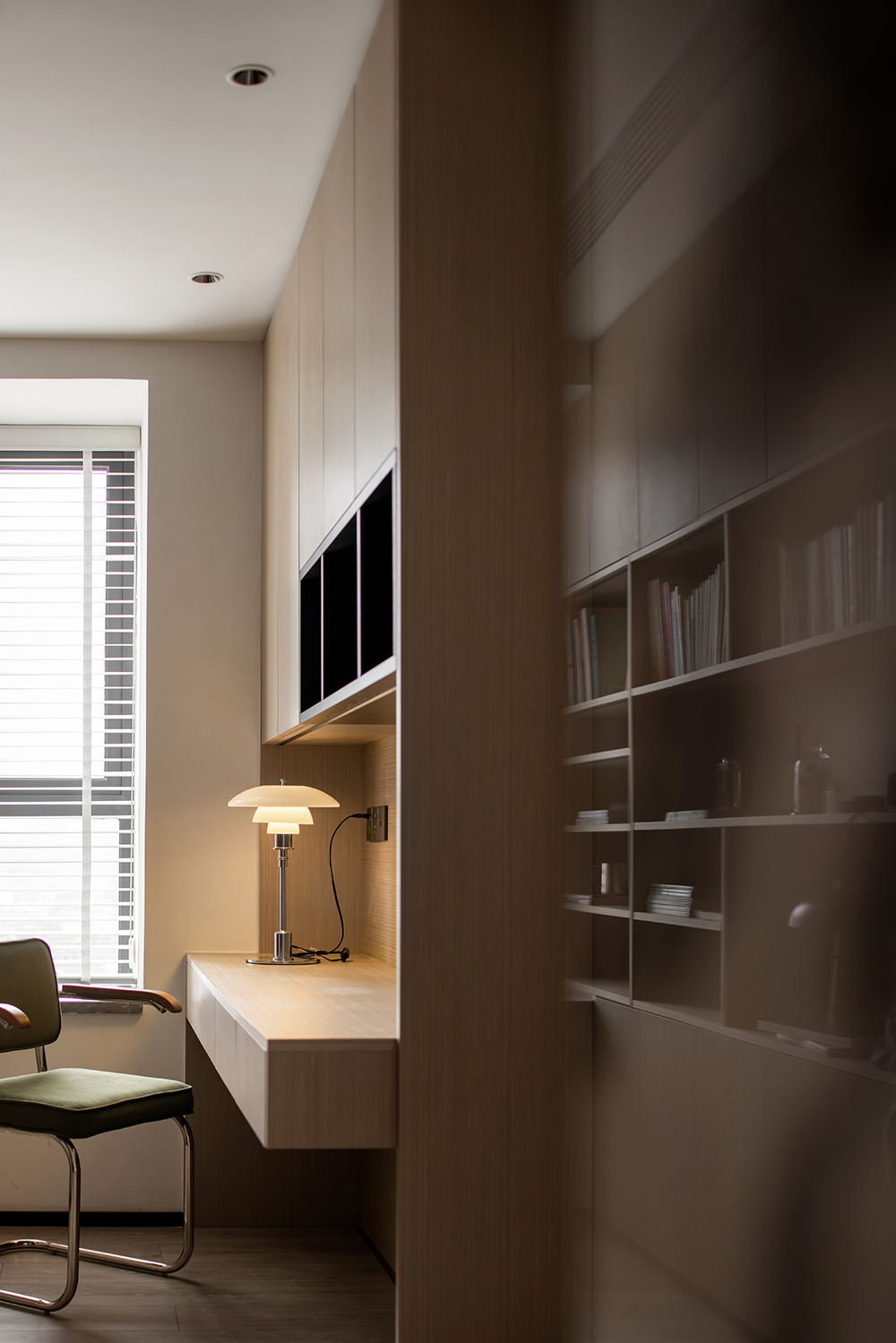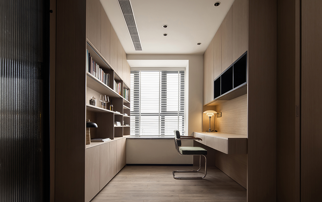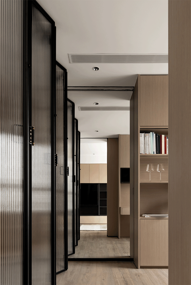 ▲想让书房变成一个封闭的空间,光有木移门还不够,还要有折叠的长虹玻璃门,这么看玻璃与木质的搭配,出来的效果也可以足够的高级。
