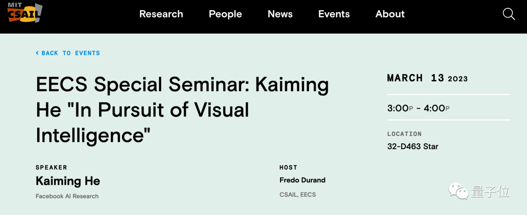 MIT CSAIL实验室发布公告,3月13日下周一,何恺明将到MIT做学术演讲。