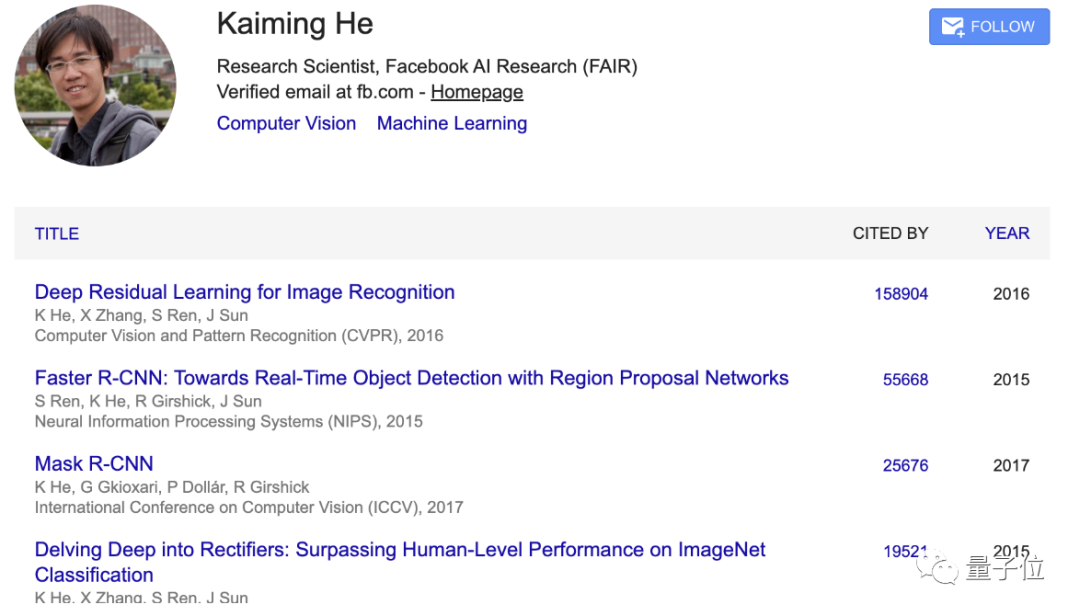 而何恺明被引用次数高达40万+。
