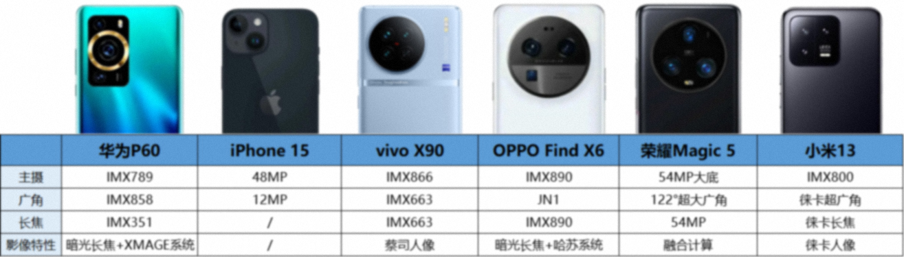 而今天,有网友制作了一张今年已经发布或者将要发布的旗舰系列机型标准版的影像配置对比,其中就显示,OPPO Find X6 这款标准版手机主摄和潜望长焦都会搭载 IMX890 传感器,同时广角镜头为 JN1 传感器。影像系统方面主打暗光长焦和哈苏系统。