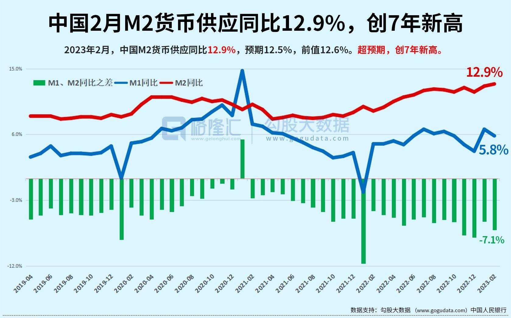 3月3日在国新办发布会上,中国人民银行副行长刘国强表示,M2增速较高,主要是因为宏观调控逆周期调节力度加大,金融体系加强对实体经济的资金支持。