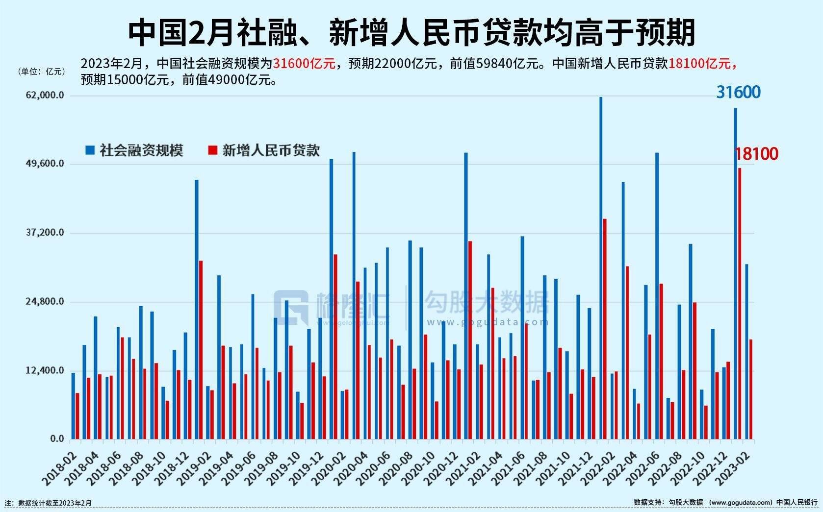 初步统计,2023年2月社会融资规模增量为3.16万亿元,比上年同期多1.95万亿元。