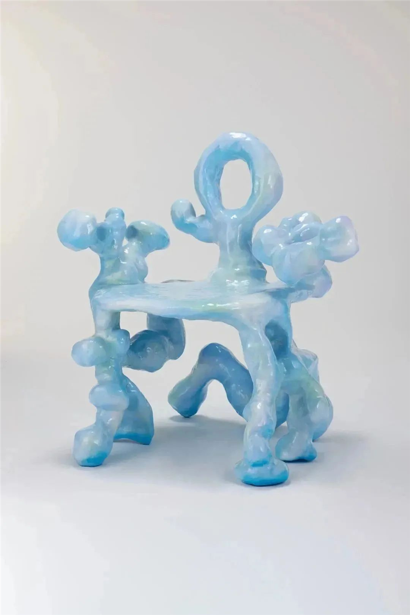 在对中国本土收藏级设计特点及趋势的梳理中,锐进的青年设计师/艺术家力量不可小觑。他(她)们对设计传统的演进和转化,对既定设计标准的挑战,使得他(她)们的作品一方面拓展着设计的边界,另一方面也使设计进行着自我更迭。例如,周磊杰的研究方向主要集中在数字有机体构筑物上,通过一系列数字转译经典创作语言的方式,对经典进行再定义,由此通常演变出一系列不可预知的、具有生物体征的有机形态。他对诸如Finn Juhl的“酋长椅”及Gerrit Thomas Tietveld的“红蓝椅”进行数字转译,通过改变不同时期大师作品的形态,使经典设计得以在当代材料中焕发新生。