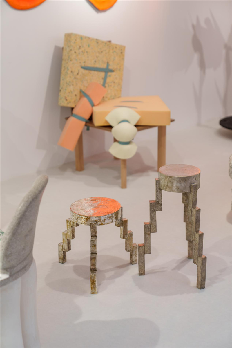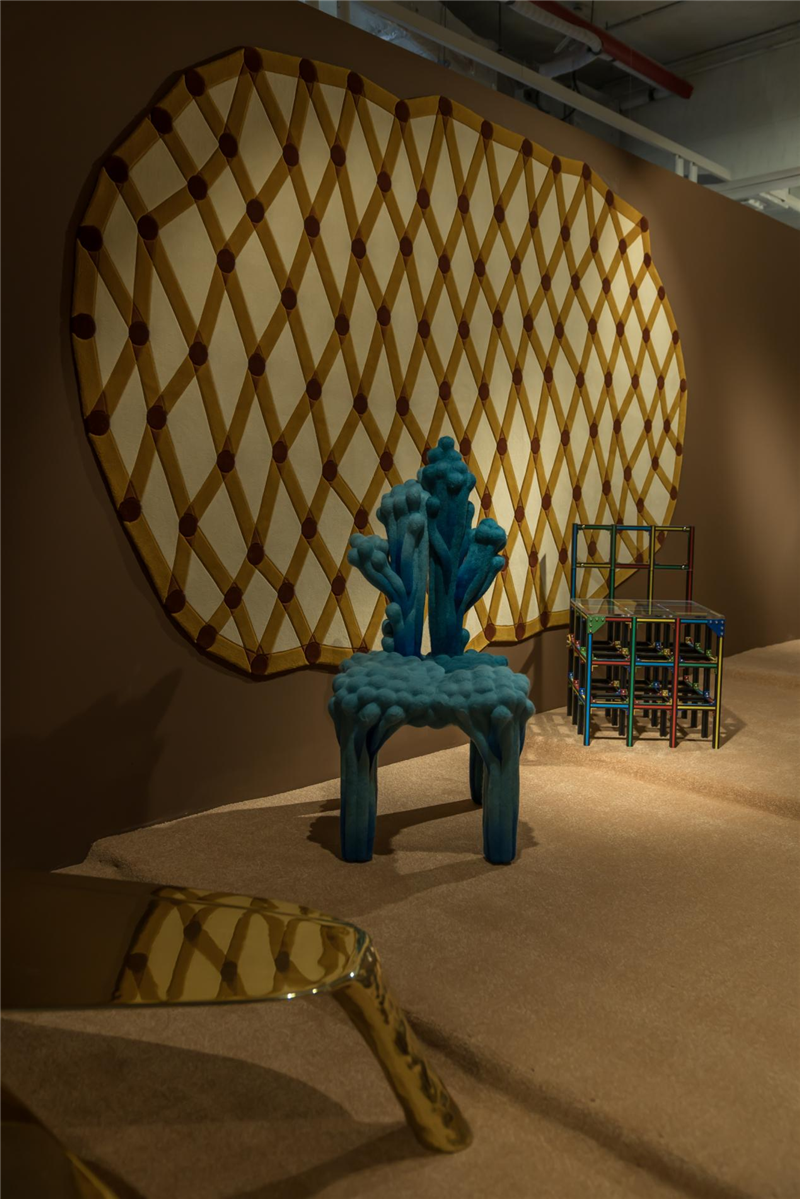 设计与艺术边界的消弭,带来的是跨学科协作的凸显。在第二届Design Miami/ Podium x Shanghai中,许多设计师都“身兼数职”,他(她)是设计师的同时,有的是艺术家,有的曾主攻哲学等。而设计作品的创作也不再仅仅是设计师在设计软件上“单打独斗”,而需要物理学、生态学,甚至是哲学的跨学科、跨领域的协作。生于1993年的法国设计师Leo Orta则是其中的佼佼者。他在埃因霍温设计学院求学期间就开始进行各种极具爆发力的游击式设计展览,并将剧场性融入设计项目中。不管是二人组还是多人团体,Leo Orta这一核心人物都以离经叛道的雕塑式造物方式与表演性的展览模式给设计界留下了不可磨灭的印记。此外,Studio MVW明合文吉的作品跨越了建筑、室内、家具等多个领域,菲利普·考尔伯特(Philip Colbert)、安德烈·杜布勒伊(André Dubreuil)、甲乙丙设计等的作品都呈现出跨学科、跨领域协作的态势。