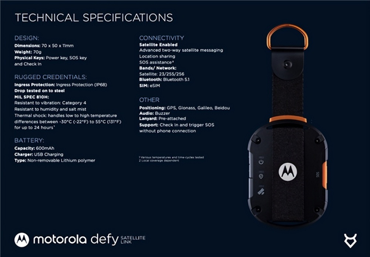 据了解,摩托罗拉Defy2是由联发科与英国手机制造商Bullitt Group联合打造的,可以实现5G、WiFi与卫星网络之间的无缝切换,目前已经上市。同时联发科还带来了一款卫星网络配件,可以通过蓝牙的方式与普通智能手机相连,使其具备卫星通信能力。