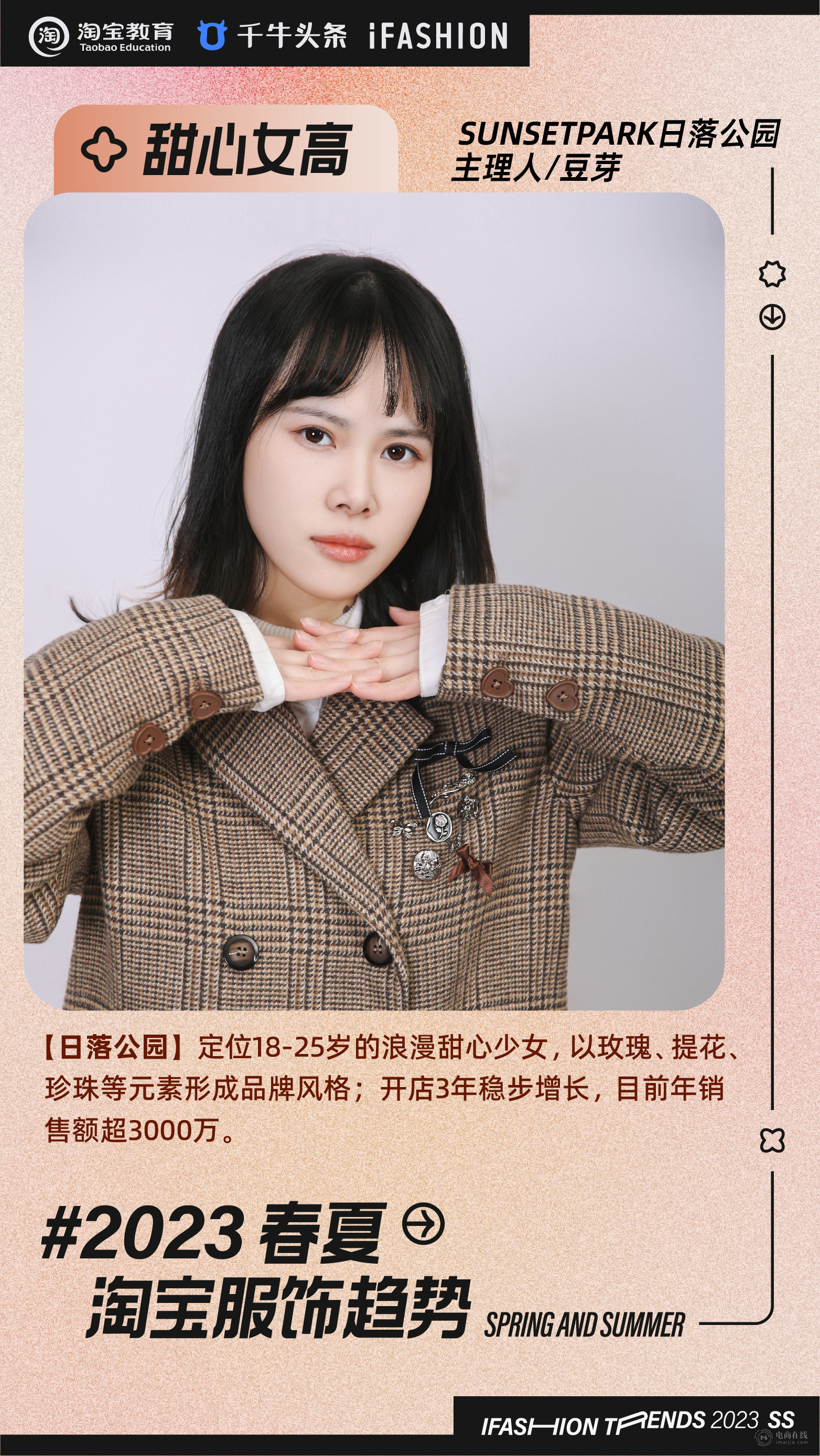 3月6日,淘宝服饰发布2023春夏9大风格赛道:摇滚辣妹、新华服、精致松弛感、甜心女高、轻松度假风、复古运动、户外机能、老钱风和时装解构。淘宝教育将通过典型商家案例,深入解读风格,为更多商家提炼趋势赛道的商品及运营机会。