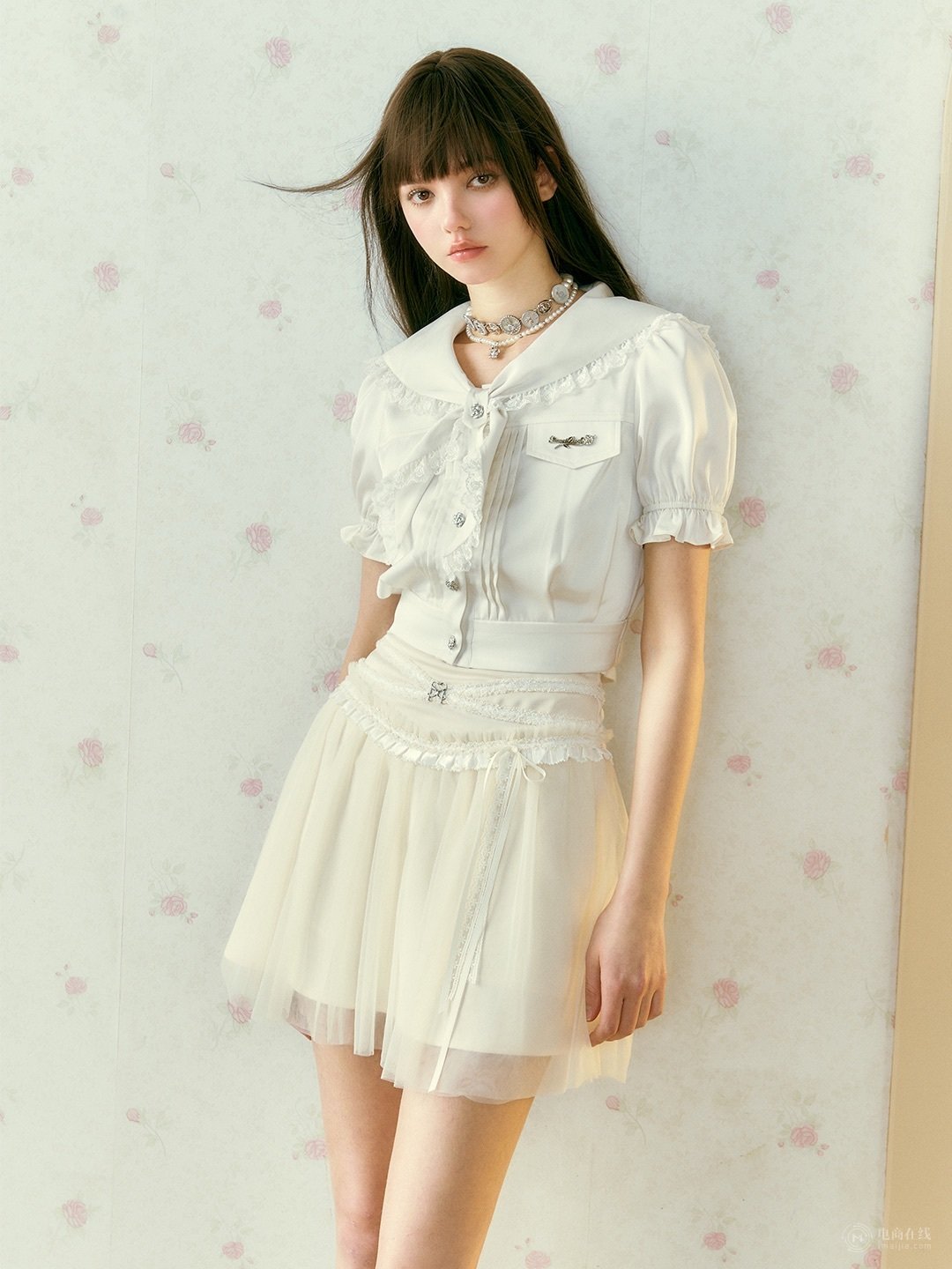 近两年,女团文化在00后女生中流行,爱豆的时尚穿搭引得年轻女生争相模仿,从而催生出一个细分风格赛道——甜心女高。这个风格,通过泡泡袖短裙、学院风小外套、厚底玛丽珍鞋和梦幻般的首饰等单品,打造出一个或甜或酷的活力女学生的形象。