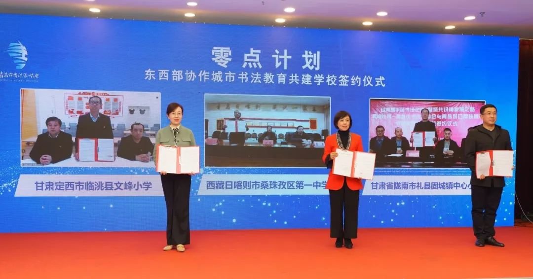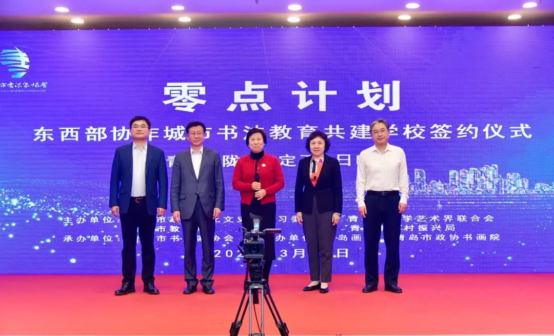 2023年3月10日下午,青岛市书法家协会“零点计划”—东西部协作城市书法教育共建学校签约仪式在青岛国际新闻中心新闻发布厅举行。