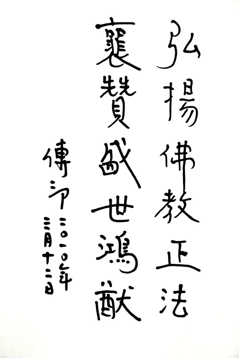 2011年11月8日,应韩国佛教界邀请,传印长老率团访问韩国,为曹溪宗总务院题词“光寿无量”