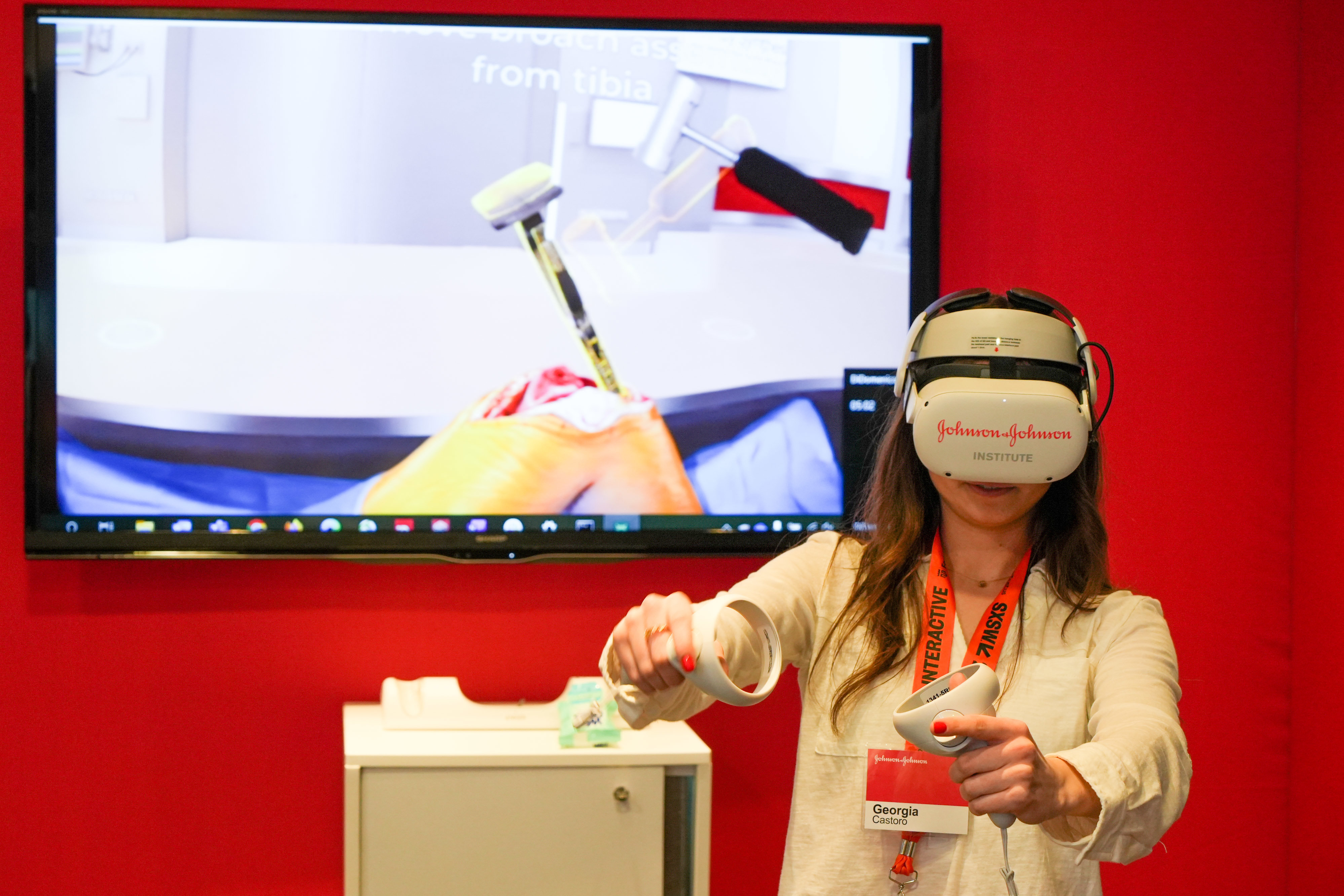 3月10日,观众在美国得克萨斯州奥斯汀举行的“西南偏南”多元创新大会和艺术节上体验VR手术技术。新华社发(李波摄)