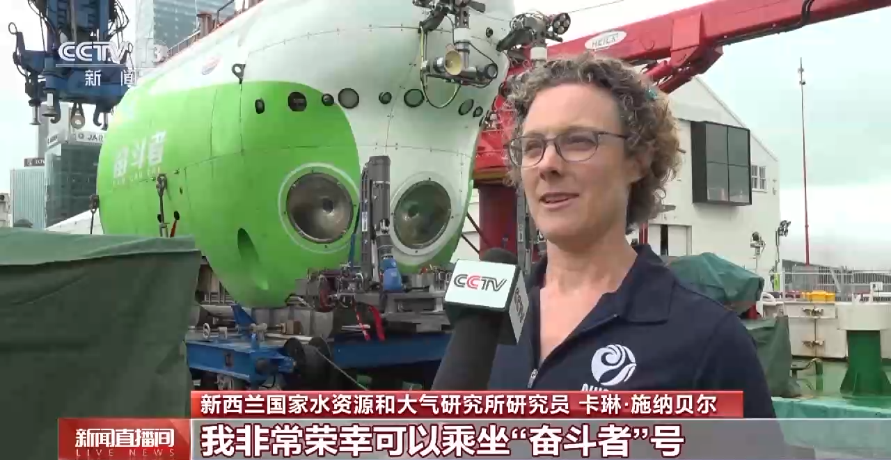 新西兰国家水资源和大气研究所研究员 卡琳·施纳贝尔:我非常荣幸可以乘坐“奋斗者”号前往克马德克海沟最深的地方,大约超过10010米的深度,从海面到达海底大约需要3个小时的时间。这是一台了不起的设备,给世界带来科研机遇。与来自中国大学和科研机构的同事一起工作给我带来很重要的学习机会,我们关系很融洽,每天我们都会举行科研会议,会议期间会有活跃的讨论,我们双方都从彼此的经验和知识中学到很多。