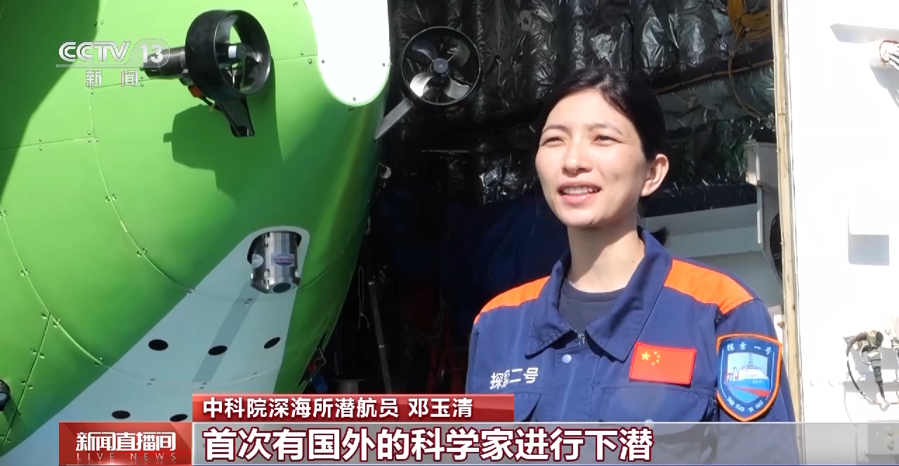 中科院深海所潜航员 邓玉清:这是“奋斗者”号首次有国外的科学家进行下潜,即使这个航次作业区在海况极其恶劣的西风带,风和涌浪都很大,给潜水器的布放回收带来很多困难,“奋斗者”号载人潜水器还是实现了多天连续下潜。