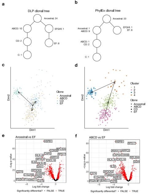 上述结果表明,PhylEx分析识别了驱动突变,阐明了克隆的空间分布,并促进了scRNA表达数据的下游分析,揭示了克隆的功能特征。